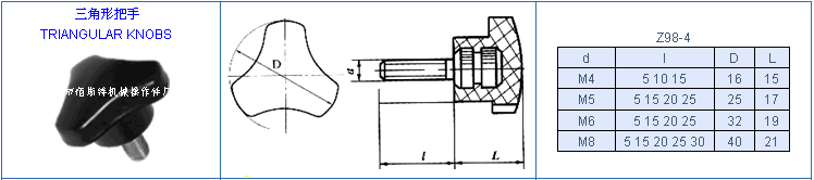 名稱:三角形把手 材料:酚醛模塑料(膠木、電木) 外觀:光亮,外形美觀,自然 標(biāo)準(zhǔn):Z98-4