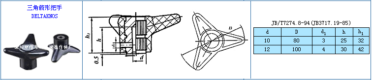 名稱:三角箭形把手 材料:酚醛模塑料(膠木、電木) 外觀:光亮,外形美觀,自然 標(biāo)準(zhǔn):JB/T7274.8-94