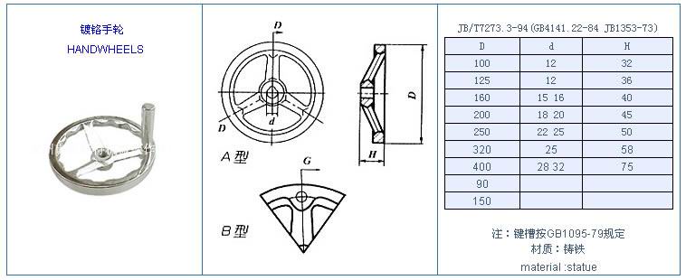 名稱:鍍鉻手輪 材料:鑄鐵 外觀:光亮,鍍鉻 標(biāo)準(zhǔn):JB/T7273.3-94